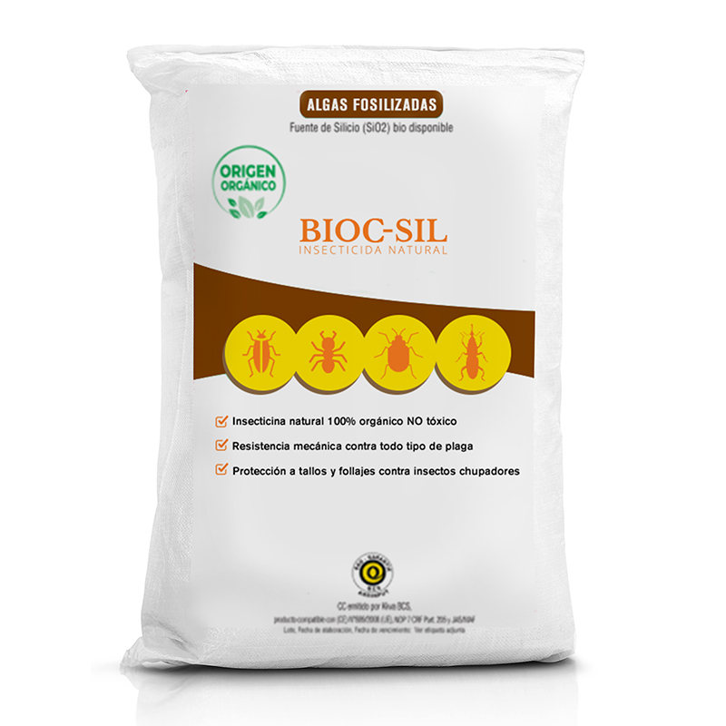 BIOC-SIL plantas, como insecticida es altamente efectivo contra ácaros, arañuelas, babosas, carcomas, cascarudos, chinches, cucarachas, garrapatas, gorgojos, grillos, hormigas, jejenes, langostas, moscas, mosquitos, orugas, piojos, polillas, pulgones, tábanos, termitas, tucuras, vinchucas, etc.